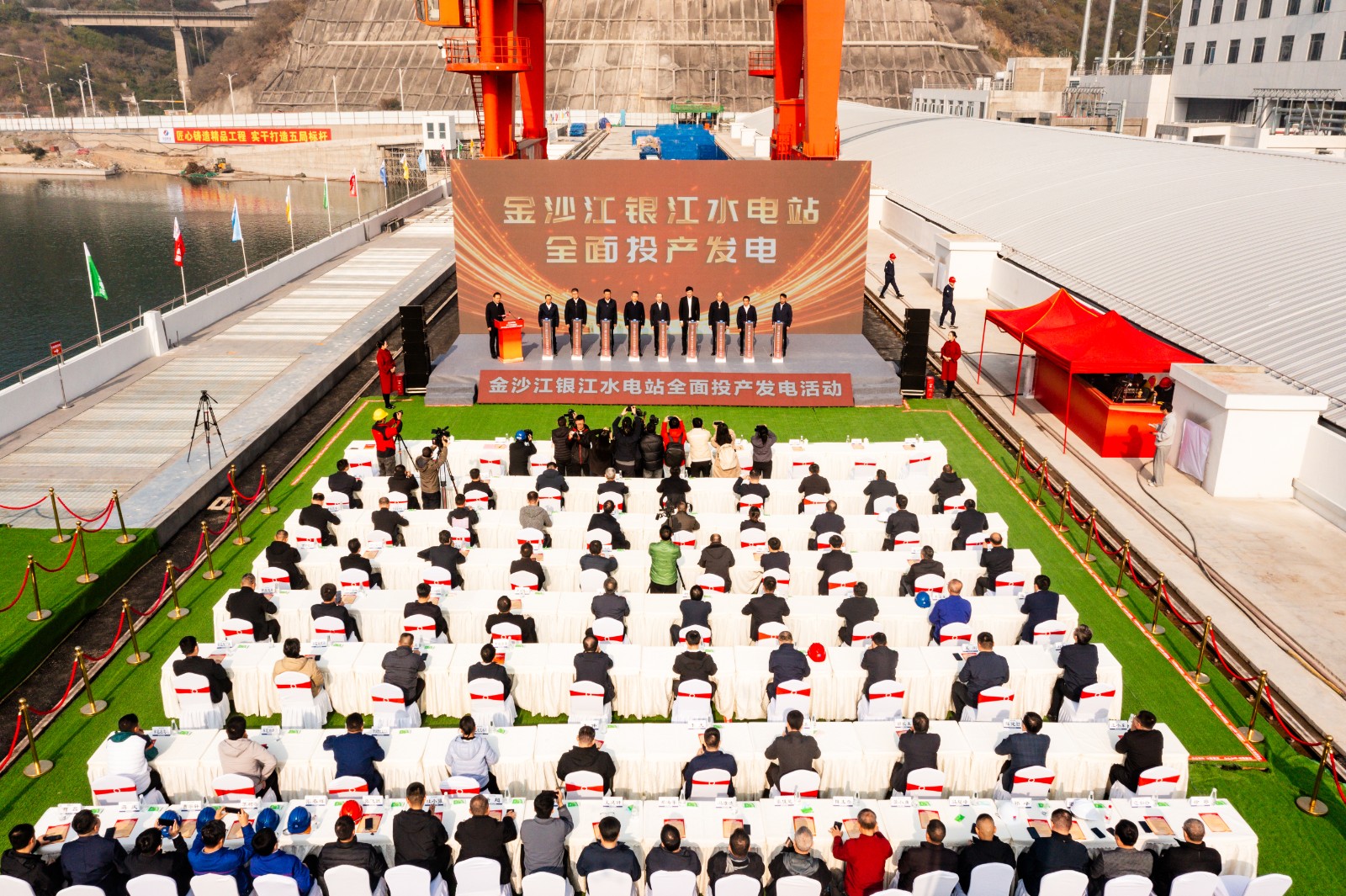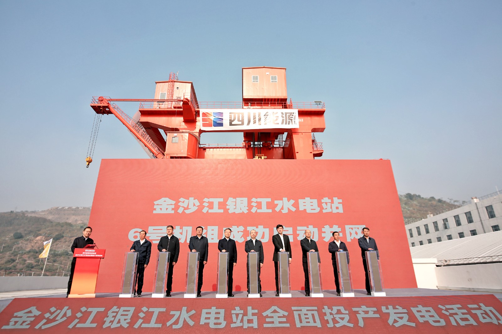 12月19日上午11时,四川能源发展集团金沙江银江水电站全面投产发电活动在电站大坝上举行,四川省国资委党委委员、副主任张敏,攀枝花市政府党组成员、副市长许军峰,四川省能源局副局长曾光,四川能源发展集团党委副书记、副董事长、总经理邓超出席活动并致辞,集团党委委员、副总经理杨阳主持活动,总经理助理、J9九游会党委书记刘胜金出席活动。