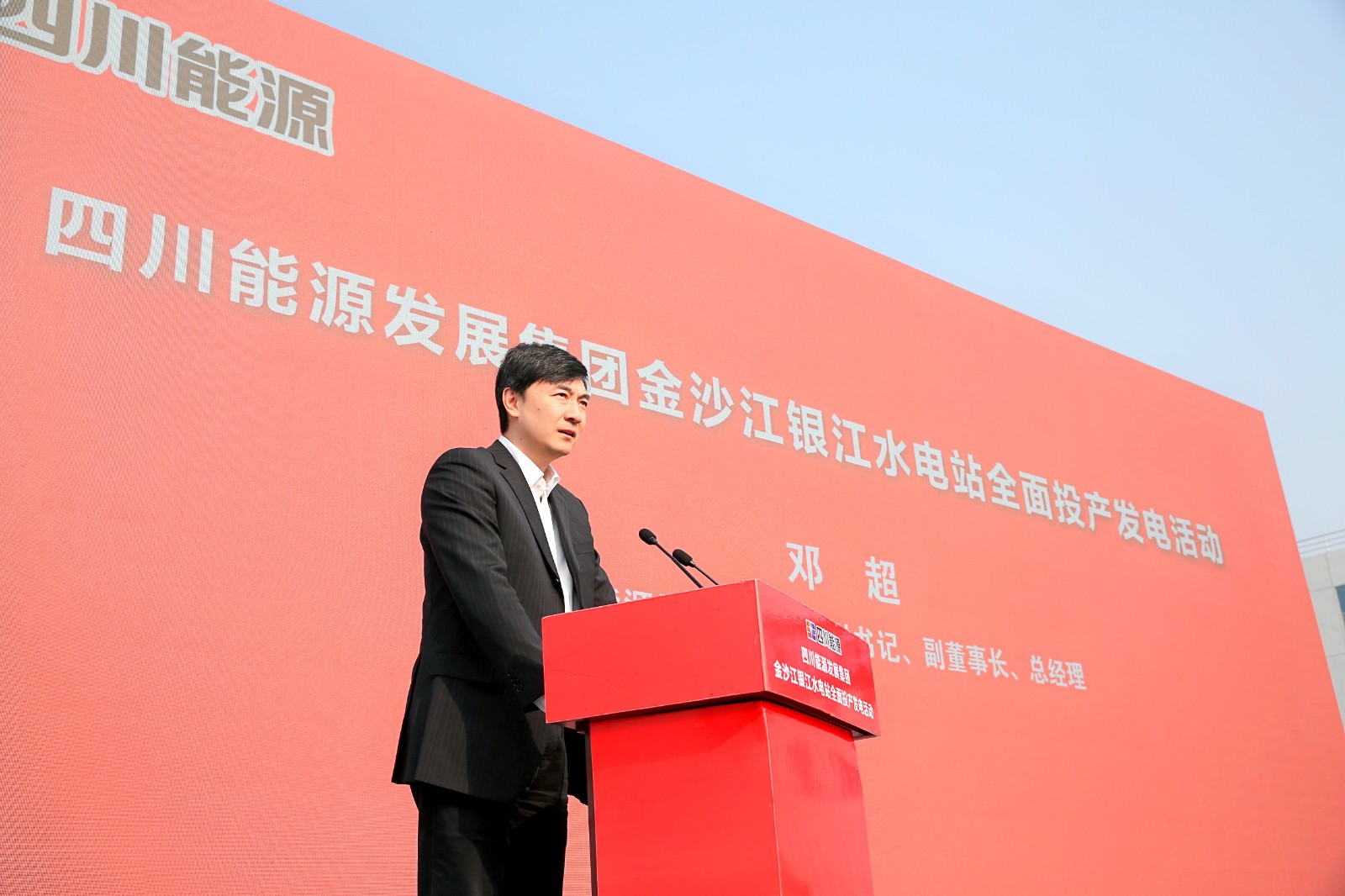 邓超在致辞中代表四川能源发展集团,向长期关心支持集团发展的各级政府及有关部门表示衷心感谢,向为银江水电站建设付出艰辛努力的全体参建单位、合作伙伴致以最诚挚的问候。他表示,回望银江水电站的建设历程,取得的成果来之不易,我们将以此次活动为鼓舞,保持开拓进取、奋发有为姿态,坚守能源主责主业,统筹推进“十五五”高位开局,全力以赴拼经济、搞建设,坚定不移扩投资、抓项目,努力在保障能源安全、建设现代化产业体系、发展新质生产力上走在前、作表率,为服务国家“双碳”战略目标、谱写中国式现代化四川新篇章贡献更大力量。