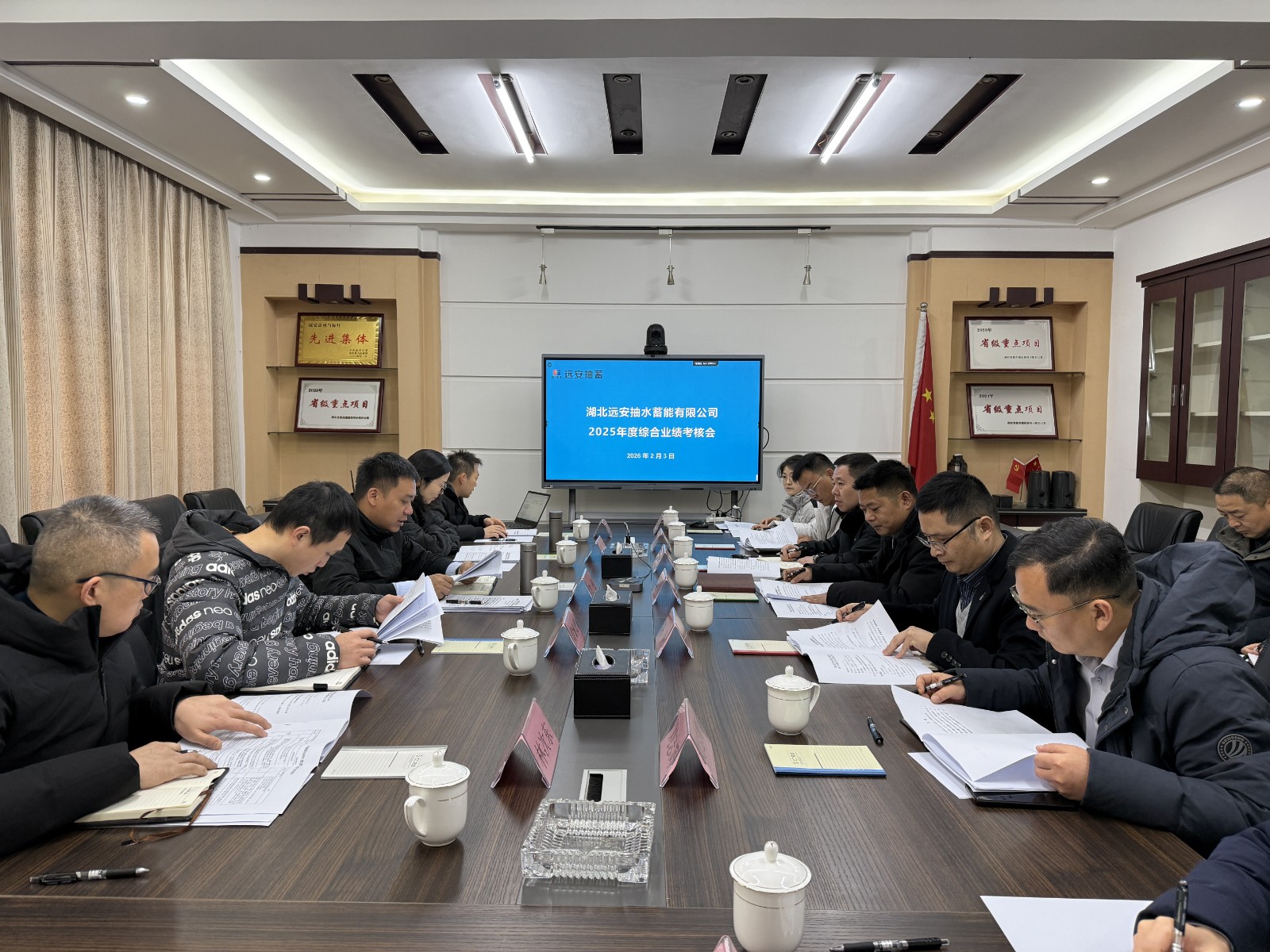 陶然强调,2026年远安抽蓄公司要再接再厉,一是守牢安全防线,春节临近,项目施工现场必须守好年前最后一班岗,高度重视森林防火,加强隐患排查治理,确保春节期间施工现场安全稳定。提前做好汛期防范工作,制定应急预案,保障安全度汛。二是全面从严治党,护航发展。随着 2026 年远安抽蓄公司党建、纪检、人事、工会等机构与体系的逐步建立和健全,要进一步加强党风廉政建设,守住廉洁底线。特别是招投标领域,要严格遵守相关法律法规和公司制度,规范操作流程,营造风清气正的发展环境。