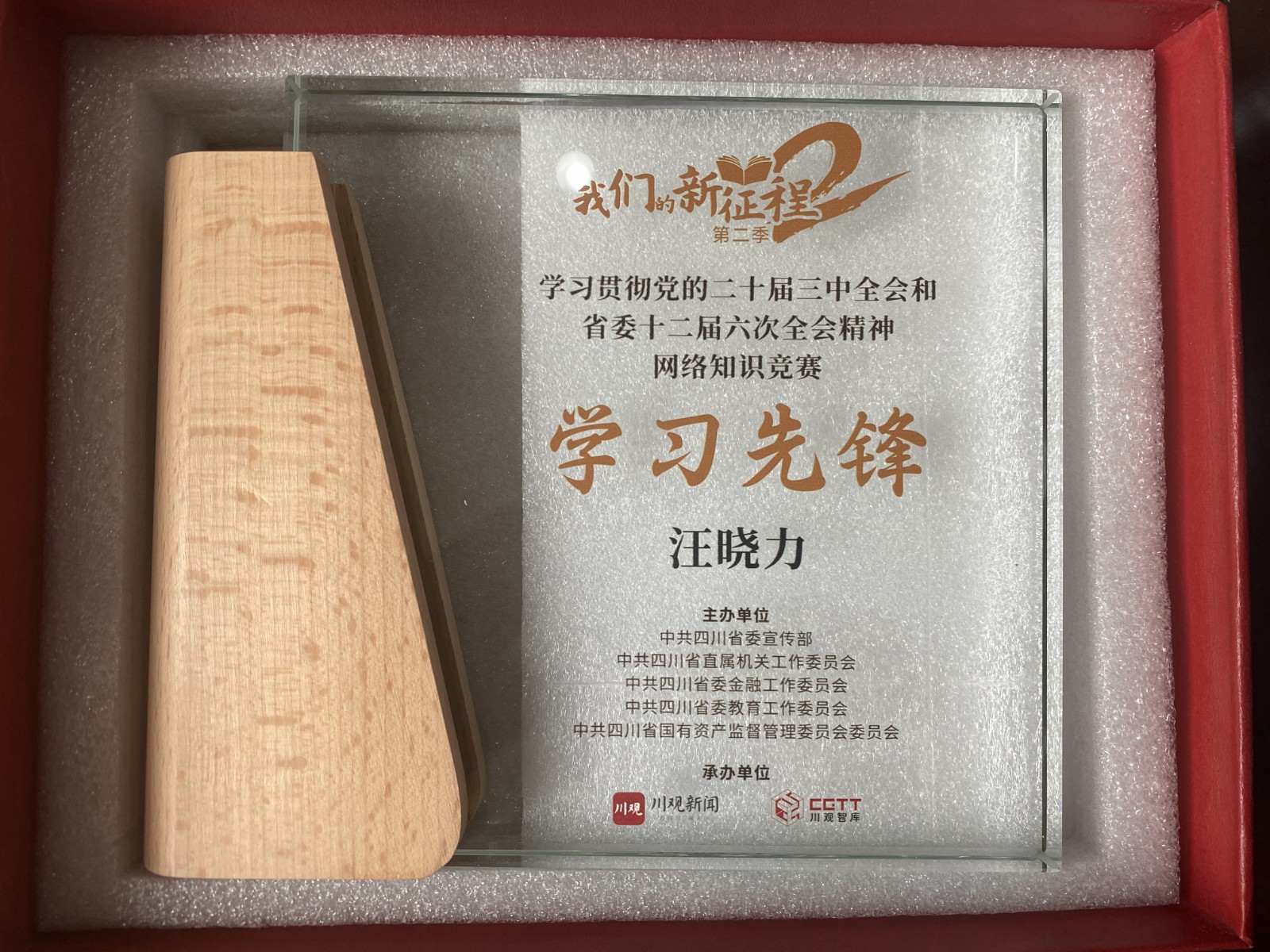 近日,由中共四川省委宣传部、省委省直机关工委、省委金融工委、省委教育工委、省国资委党委联合主办,四川日报报业集团承办的“我们的新征程”(第二季)网络知识竞赛公布了获奖名单,并为获奖人员发放奖牌,川投电力所属天彭电力11名员工凭借扎实的理论功底和锲而不舍的努力,从全省32万余名参与竞赛的党员群众中脱颖而出,进入全省个人排行榜前30名,荣获“学习先锋”称号。