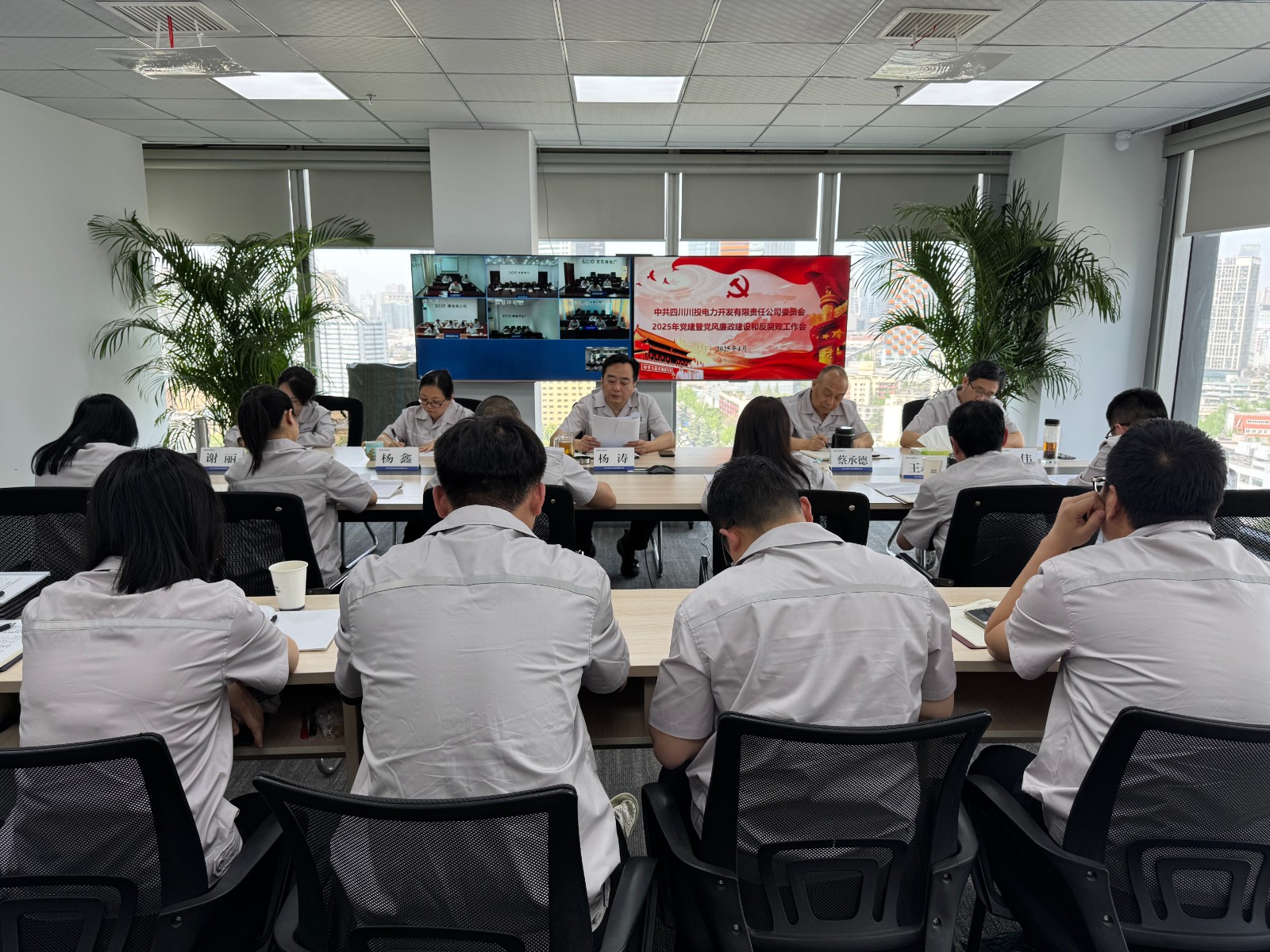 会议采取现场和视频方式召开。公司领导班子成员、中层副职以上管理人员及相关部门人员,所属公司党组织书记、党建、纪检分管领导及相关部门负责人,所属电厂党支部支部委员、党务工作者48人参加会议。