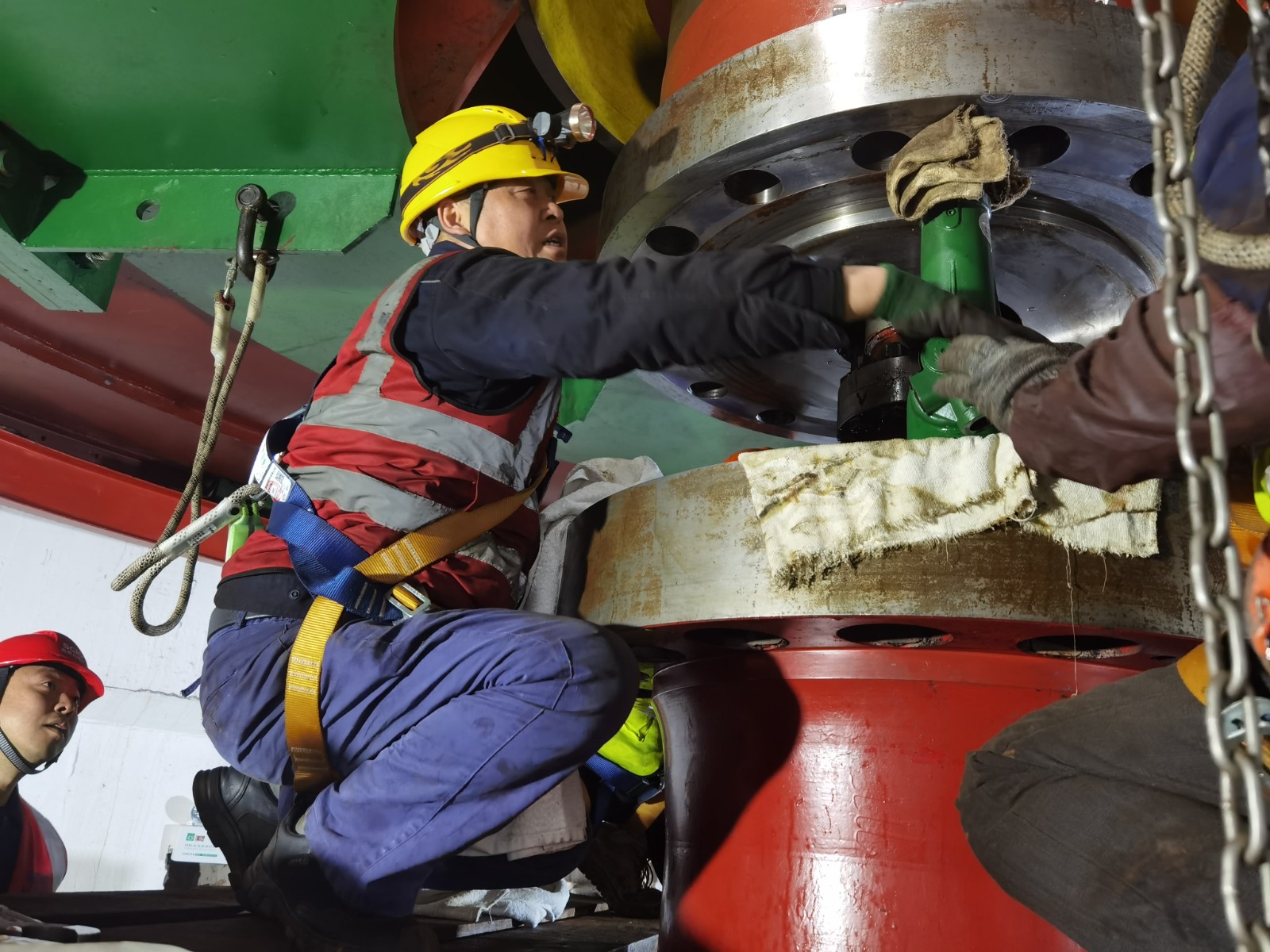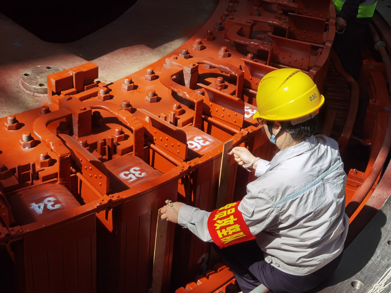 “这‘硬骨头’我来啃,请组织放心,坚决完成任务”。4月16日,转子回装过程中,老党员宋加行发扬新时代工匠精神,主动承担高风险、高技术含量的司索岗位,他哨音清晰、手势果断,与起重司机配合如“榫卯衔接”。检修团队成员分工明确、协同配合,确保转子回装工作按期顺利完成。