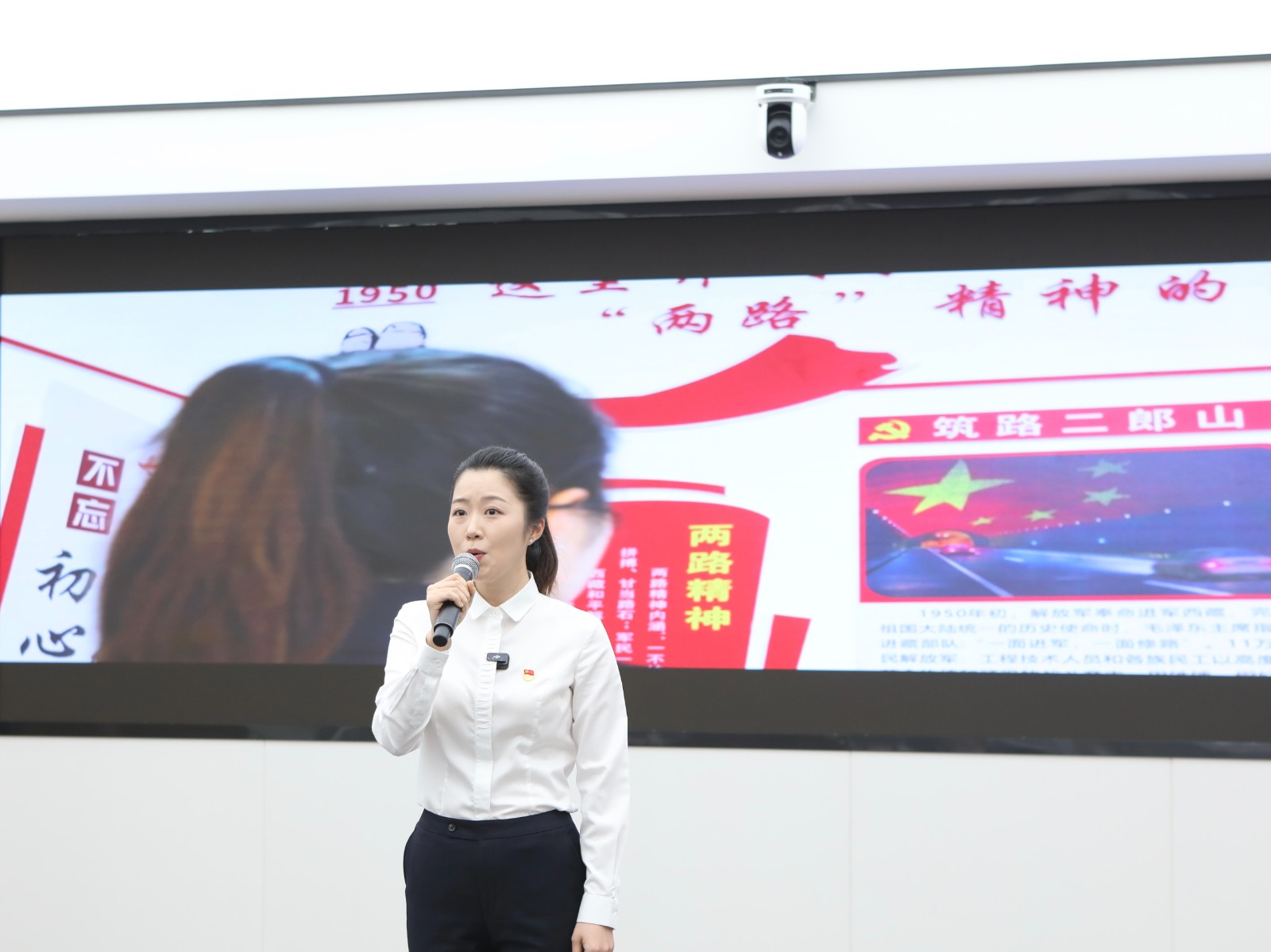 赵梦婷同志以《信仰之路》为题,通过生动的语言、鲜活的事例和真挚的情感,深入浅出阐释了“两路”精神的历史内涵,结合川投电力脚基坪电厂震后逆行抢险、天彭电力凤鸣湖水库饮水廊道清淤、玉田电厂为凉山州彝族村民送水送电等鲜活事例,展现能源人在抢险救灾、民生保障和民族团结中的责任担当,号召新时代国企人赓续“两路”精神,汲取奋进力量。