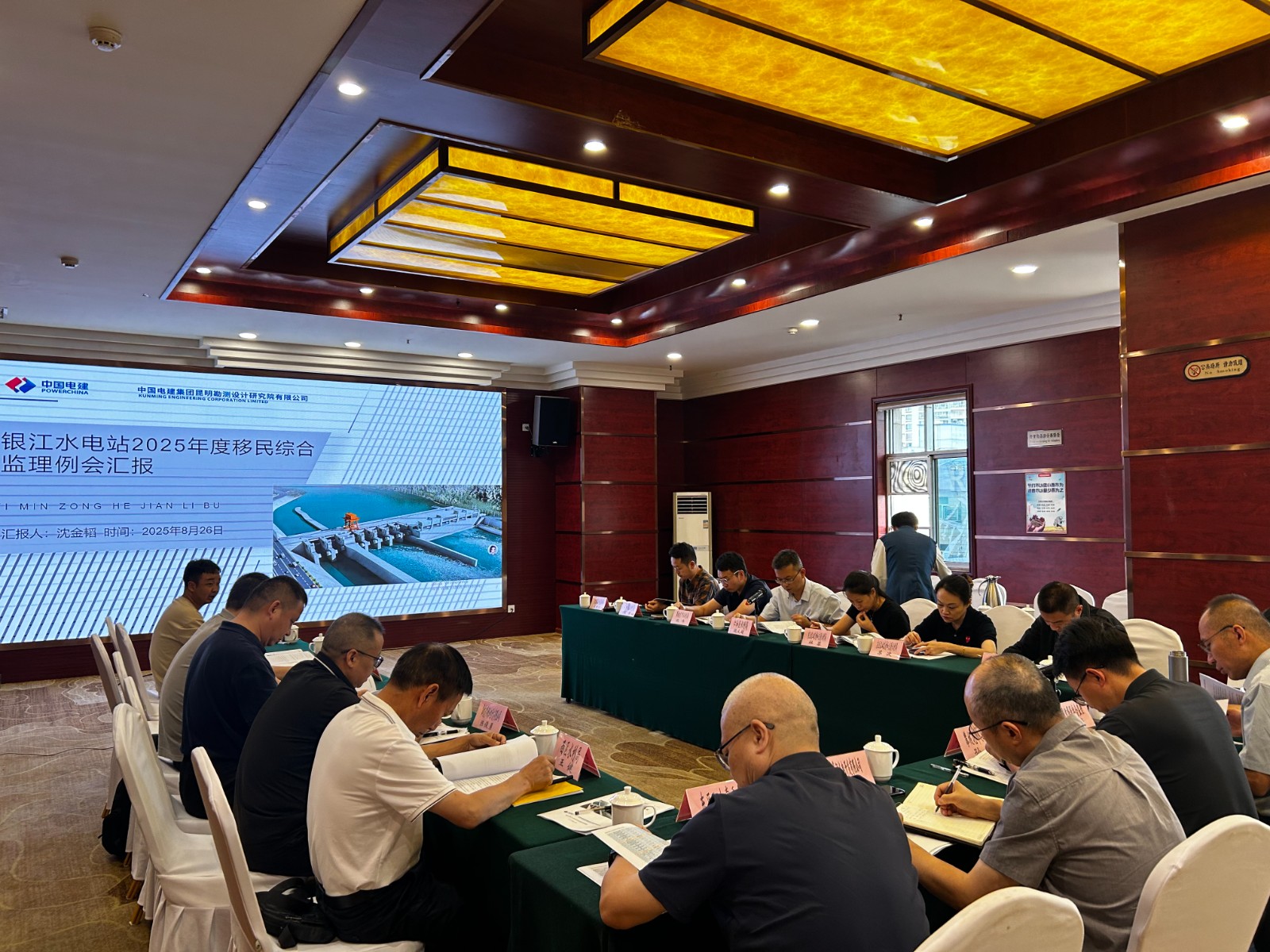 8月26日,金沙江银江水电站召开2025年度移民监理会议,会议由中国电建集团昆明勘测设计研究院有限公司张礼强主持,攀枝花市水利局,东区人民政府及相关部门,仁和区人民政府及相关部门,西区人民政府及相关部门,J9九游会攀水电公司,移民综合设计(代),移民综合监理等单位共计30余人参加会议。