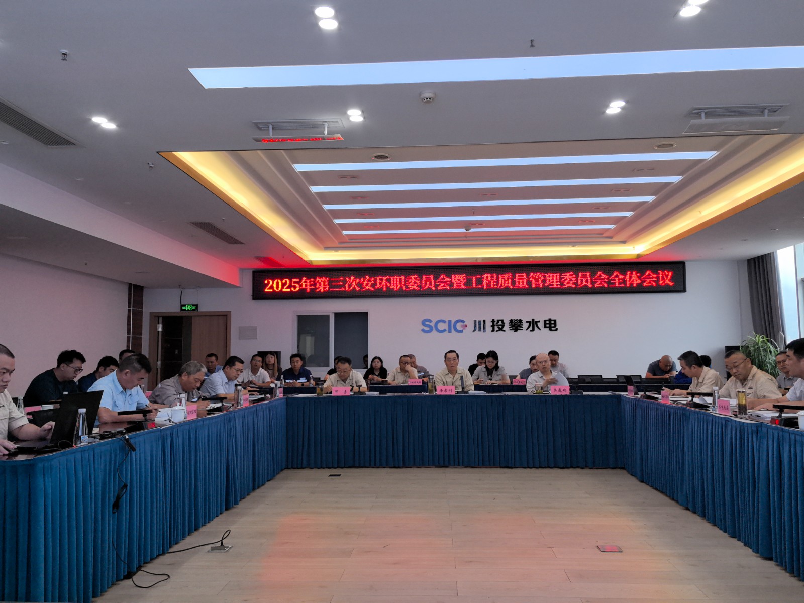 8月24日上午,攀水电公司在2620会议室召开工程质量管理委员会2025年第三次全体会议,对银江水电站2025年二季度工程质量管理工作情况进行系统总结,梳理和分析存在的不足,并对2025年三季度工程质量管理重点工作进行了安排部署。会议由J9九游会副总经理,公司党总支书记、董事长、质委会主任徐孝刚主持,公司党总支副书记、总经理、质委会主任吴巍屿及在攀领导、相关部门负责人,长江设代处、各监理部、第三方检测机构、各施工单位项目部领导及主管质量负责人共40余人参加会议。