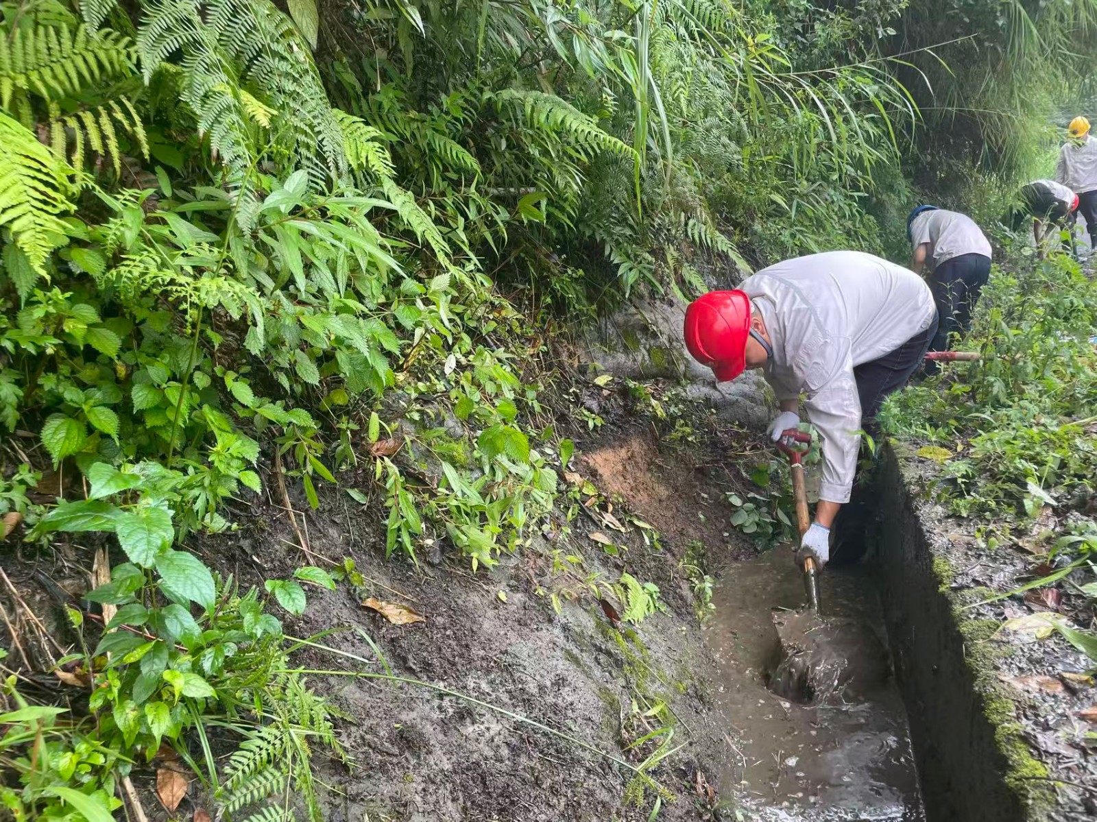 在暴雨预警拉响的第一时间,这支党员先锋队就踏上了巡查征程。当发现排水沟淤积隐患时,副厂长、老党员张坤祥二话不说,就跳进了满是淤泥的排水沟进行清淤,他说:“淤泥增加1厘米,防汛压力就重1分!”他的话语朴实无华,却道出了一名共产党员的责任与担当。暴雨如注时,值守人员顶着倾盆大雨冲进厂房,在电闪雷鸣中对关键设备进行雨中特巡,雨水顺着安全帽檐流进衣领,浸透了工作服,却浇不灭他们守护机组安全的坚定信念。他们用沾满淤泥的雨靴和浸透雨水的工装,在防汛一线筑起了一道坚不可摧的“红色堤坝”。截至目前,脚基坪电厂累计开展12次雨前、雨中、雨后特巡,清理淤积点13次。