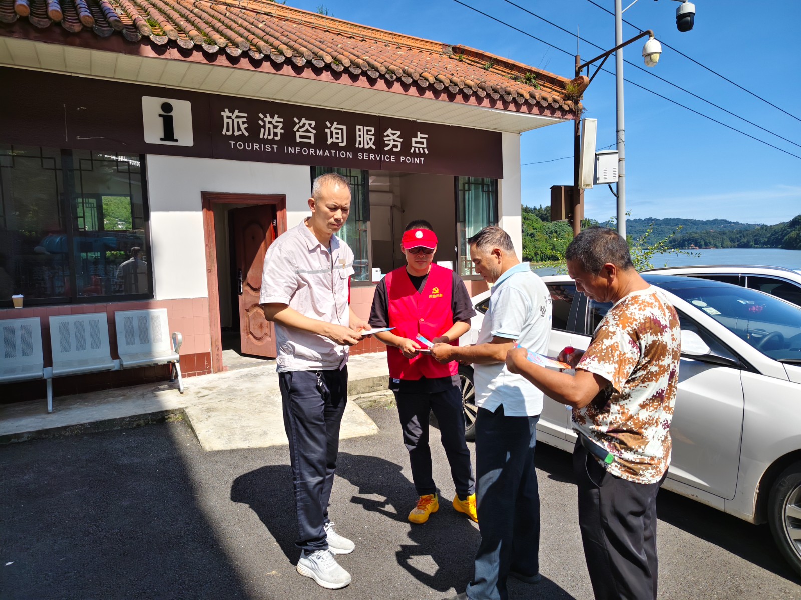 为深入开展企地共建工作,充分发挥党支部的战斗堡垒和党员先锋模范作用,国庆、中秋“双节”期间,槽渔滩电厂党支部星光党员先锋队选派4名党员组成志愿服务队,走进槽渔滩景区为来访游客提供志愿服务。