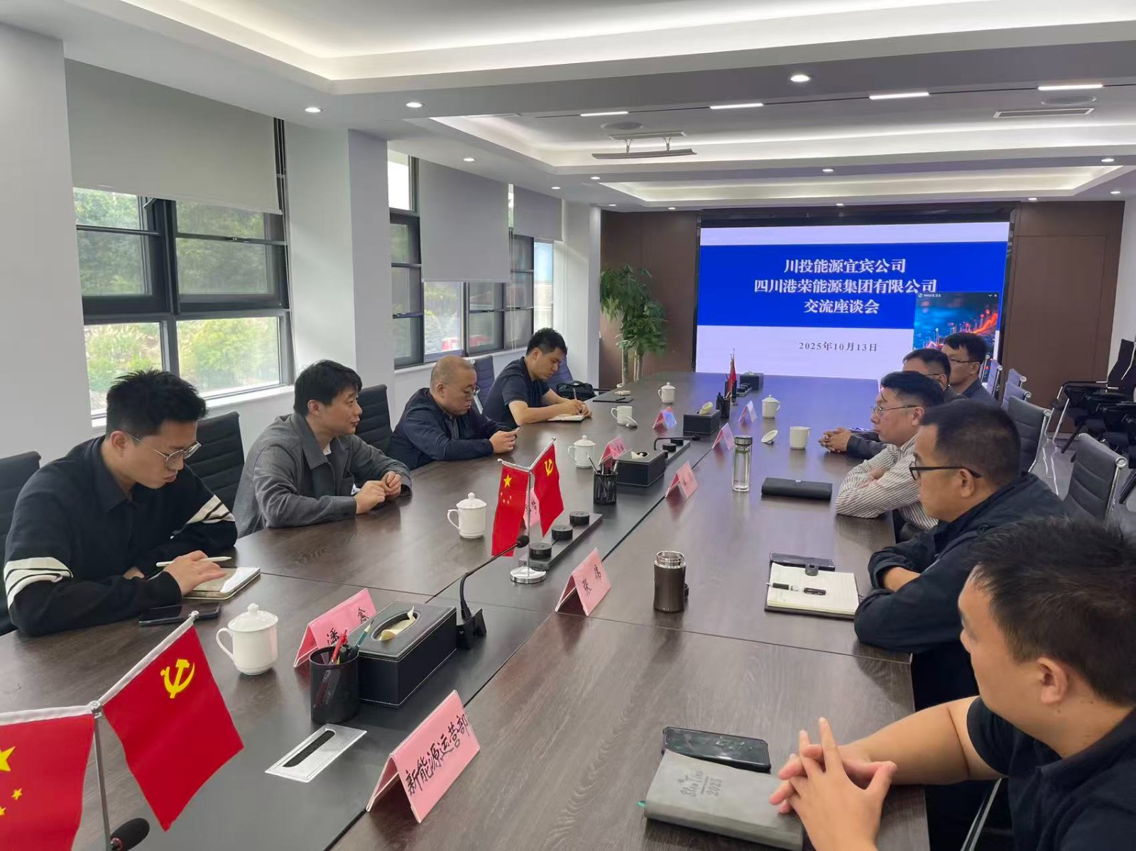 10月13日,攀新能源公司党支部副书记、副总经理、工会主席,J9九游会(宜宾)有限公司董事长郭梦夏一行赴四川港荣能源集团有限公司调研,双方开展交流座谈。港荣能源公司党总支副书记、总经理李貌出席并主持座谈会议。