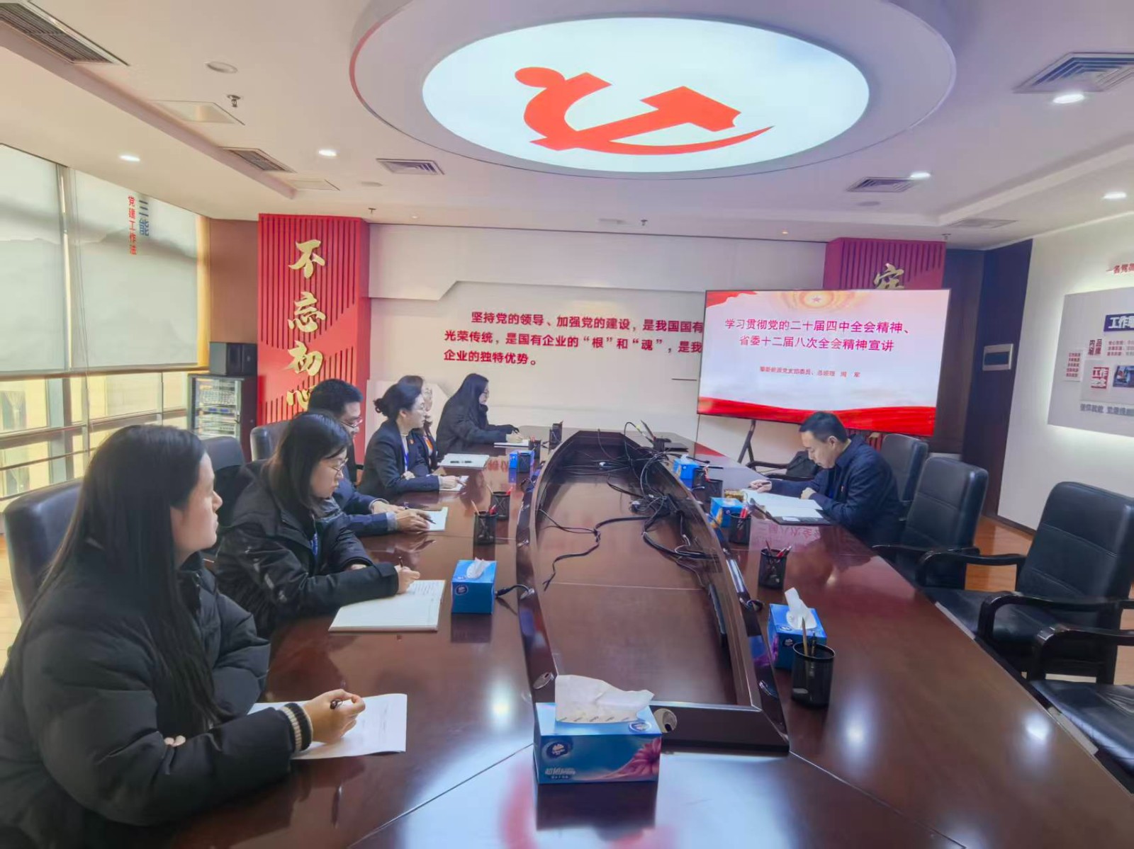 近日,攀新能源党支部委员、总经理周军为公司党支部第一党小组宣讲党的二十届四中全会和省委十二届八次全会精神,激励党员同志们要切实把思想和行动统一到党中央和省委决策部署上来,激励干部职工在新发展阶段进一步强化担当意识、主动作为。
