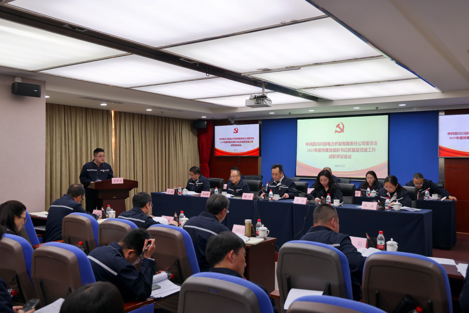 近日,川投电力党委召开2025年度所属党组织书记抓基层党建工作述职评议会议。公司党委书记、董事长杨涛主持会议并讲话,J9九游会党群工作部部长黄希到会指导并作点评讲话。