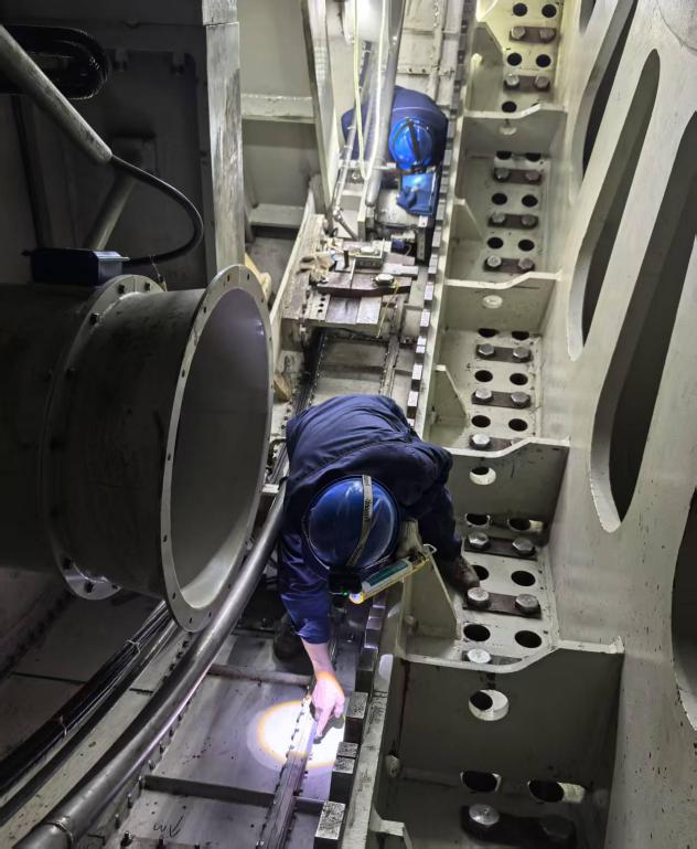 本次1号机组C级检修紧扣“安全运维、降本增效”的核心目标,采取“专业协同、模块推进”的方式有序推进。机械专业团队围绕设备性能提升,重点开展流道全面检查、导叶间隙检查与调整,同步完成各类管路清扫、油箱内部清扫,实施1号液压锁定接力器铜垫安装、调试及间隙处理等;电气专业团队聚焦电气系统功能的恢复,开展发电机定子、转子绝缘检测与清洁保养,完成断路器预防性试验、继电保护装置校验及控制系统逻辑测试,同步检查辅助系统。