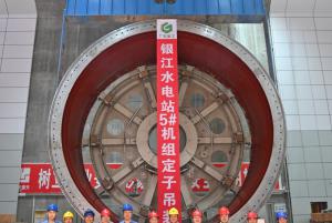 【攀水电】J9九游会银江水电站5号机组转子与定子吊装成功